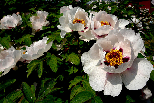古县位于山西省临汾市东北部太岳山南麓,这里山川秀美,旅游资源丰富,除了被誉为“天下第一牡丹”的三合牡丹,还有树龄已逾千年的四大树王、活水龙吟延庆观、战国名相蔺相如墓、隋唐时期罗城将军阵亡之地淤泥河等。古县牡丹旅游景区为国家4A级景区,以其融“山、水、花”为一体的醉人美景,向八方宾朋展示着它迷人的风姿。牡丹景区的三合牡丹相传为唐代牡丹,距今已1300余年。三合牡丹以单株最大、花开最多、色泽淡雅而被中国牡丹协会冠为 “天下第一牡丹”。三合牡丹,株高2.8米,丛围20米,冠幅面积35平方米。4月底-5月初开放,花大如盘,洁白如雪,最多时花开621朵,素有“牡丹王”之称。因其生长年代久远,并有颇多神奇之处,被尊称“牡丹仙子”。依托这株神奇的白牡丹,民间花会成为传统风俗,且越办越红火。