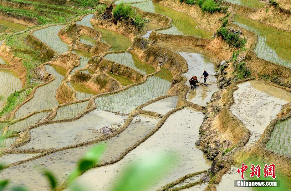 芒种节气将至 江西横峰千亩梯田耕种忙
