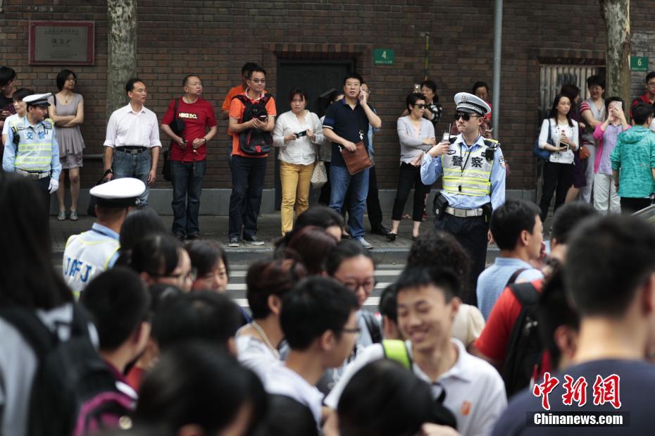 6月7日,2017年高考大幕正式拉开,上海5万余名考生步入考场,参加考试。据悉,今年是上海第一年实施全新的高考改革方案,实施“3+3”新高考方案。图为上海交警保障考点周边安静有序。中新社记者 张亨伟 摄