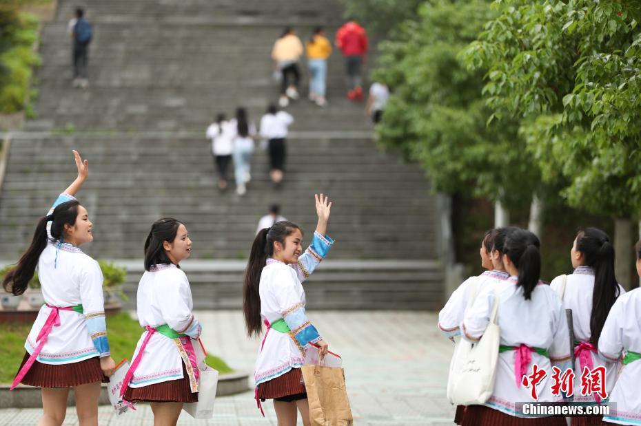 6月7日,贵州榕江少数民族考生步入考场。当日,2017年高考拉开序幕。据中国教育部统计,2017年全国高考报名考生共940万人,贵州高考考生报考总人数411897人。黄芷昕 摄