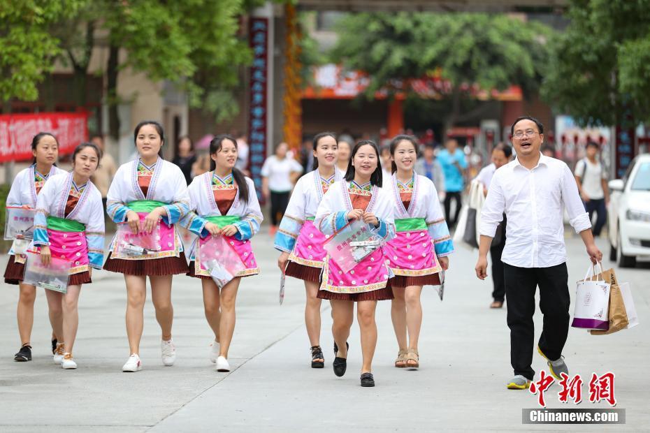 6月7日,贵州榕江少数民族考生步入考场。当日,2017年高考拉开序幕。据中国教育部统计,2017年全国高考报名考生共940万人,贵州高考考生报考总人数411897人。黄芷昕 摄