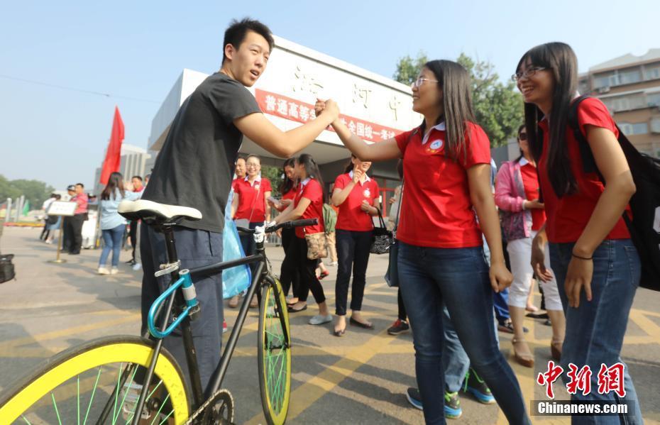 中国高考拉开帷幕 志愿者夹道鼓掌加油