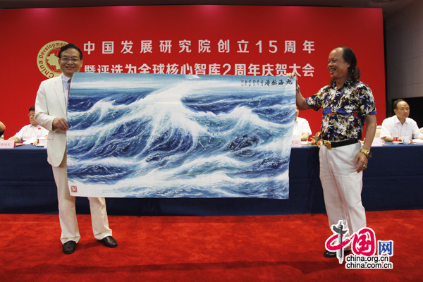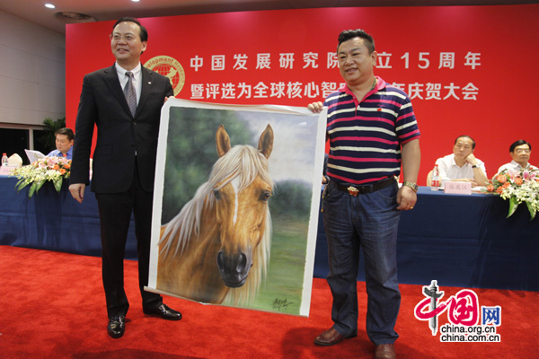 会上,修福金、李昌鉴为几位创始院长颁发中国发展研究院‘终身院长’荣誉牌匾。全国工商联党组书记徐乐江、中共中央党校原副校长李君如、中共中央候补委员、著名企业家张瑞敏等发来贺电贺信。著名书画家崔根峰、周智慧、郭金栋向大会赠送了书画作品。