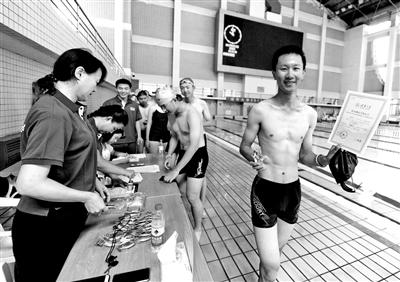 据负责测试的体育老师介绍,测试合格的标准很简单:深水区50米长的标准泳道,不论泳姿和快慢,只要能用比较标准的泳姿从这头儿游到那头儿,中间会换气,就算合格。合格的同学能当场领到一张合格证书和清华自制的一枚奖牌。