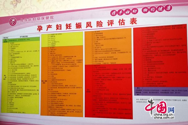 贵州省贵阳市乌当区妇幼保健院一位产前门诊的主治医师林葛向记者介绍, 该院对孕产妇进行分级管理,用五种颜色作为标识进行区分,不同颜色代表不同危险等级,分别为:绿色=低风险、黄=一般风险、橙=较高风险、红=高风险、紫=传染病。我们的孕产妇(包括流动人口)只要到所属乡镇卫生院、社区卫生服务中心进行首次登记建册,由乡镇根据孕产妇的健康状况、病史按照《妊娠风险筛查表》和《评估表》按将相应的颜色标签贴在检查记录本和风险妊娠评估栏上。