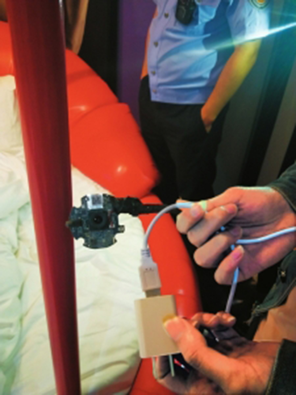 龙女士当即报警,民警赶到,将摄像头的插头取下。这是一个没有存储卡的实时播放摄像头。“我们在房间里洗了澡,换了衣服,肯定涉及到很多隐私。”得知自己的隐私可能会泄露,21岁的龙女士“懵了”。