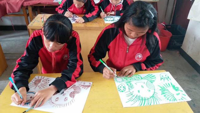 北京凌锋公益基金会收养的孤儿正在学习画画 王慧婷 摄