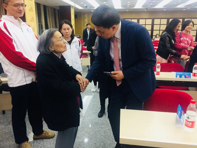 北京大学首钢医院院长顾晋正和老人交流 黄兰君 摄