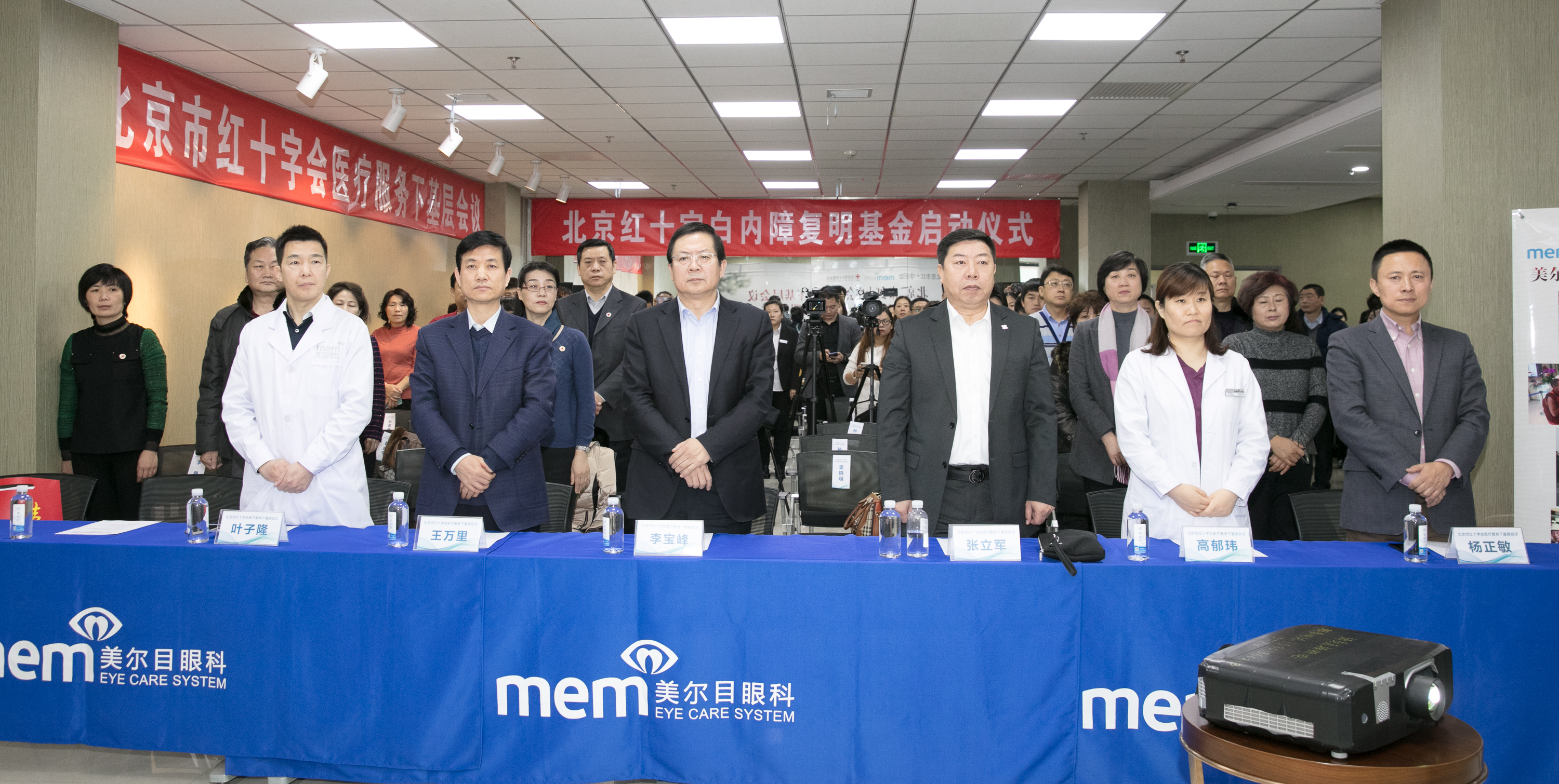 北京市红十字会党组书记、常务副会长李宝峰同志,北京市红十字会党组成员、副巡视员张立军同志,北京市红十字会党组成员、副巡视员王万里同志等市红十字会领导及北京市各区红十字会负责人、北京市红十字基金会、爱心企业代表,以及全国著名眼科专家、美尔目集团董事长叶子隆同志出席了会议,并为北京地区接受基金救助的16位患者代表揭开纱布,见证他们重见光明。