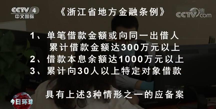 防范和化解金融风险,《浙江省地方金融条例》自8月1日起施行。条例对民间借贷活动做出详细规范,单笔借款金额或向同一出借人累计借款金额达300万元以上,借款本息余额达1000万元以上,或累计向30人以上特定对象借款,具有上述3种情形之一的,借款人应报送地方金融工作部门或者其委托的民间融资公共服务机构备案。