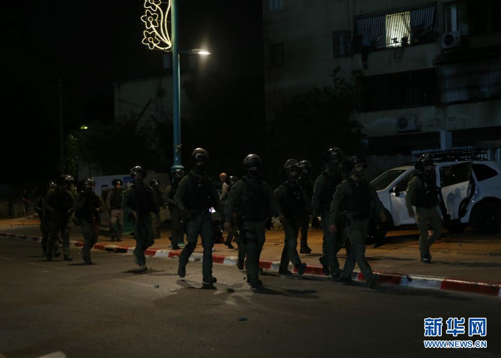 5月12日,以色列安全人员在中部城市卢德巡逻。新华社发(穆阿迈尔·阿瓦德摄)