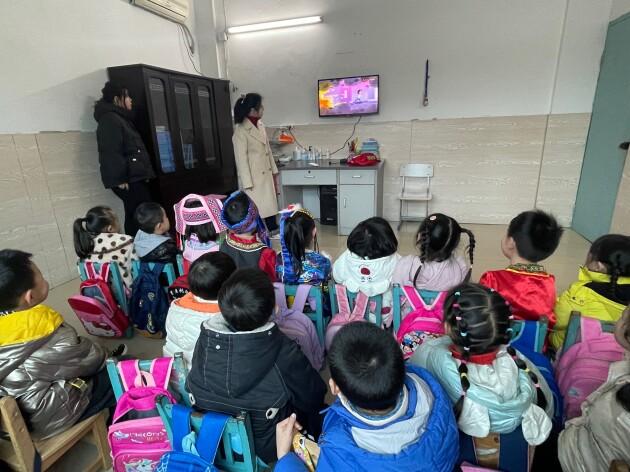 “小朋友们,今天我们来学习如果发生火灾了,我们该如何逃生。你们说好不好?”“好!”看到小朋友们如此的热情反应,龙溪社区工作人员开始播放《火场逃生通关宝典!》应急科普视频,贝贝幼儿园小朋友们都端端正正地坐着,认真地看着,一场应急课堂真正开始了。