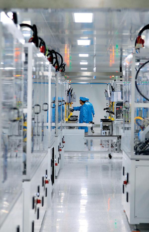 在位于新郑市的郑州电子信息产业园,sip 芯片研制及高端封测生产基地内的生产车间(2022年9月20日摄)唐强摄