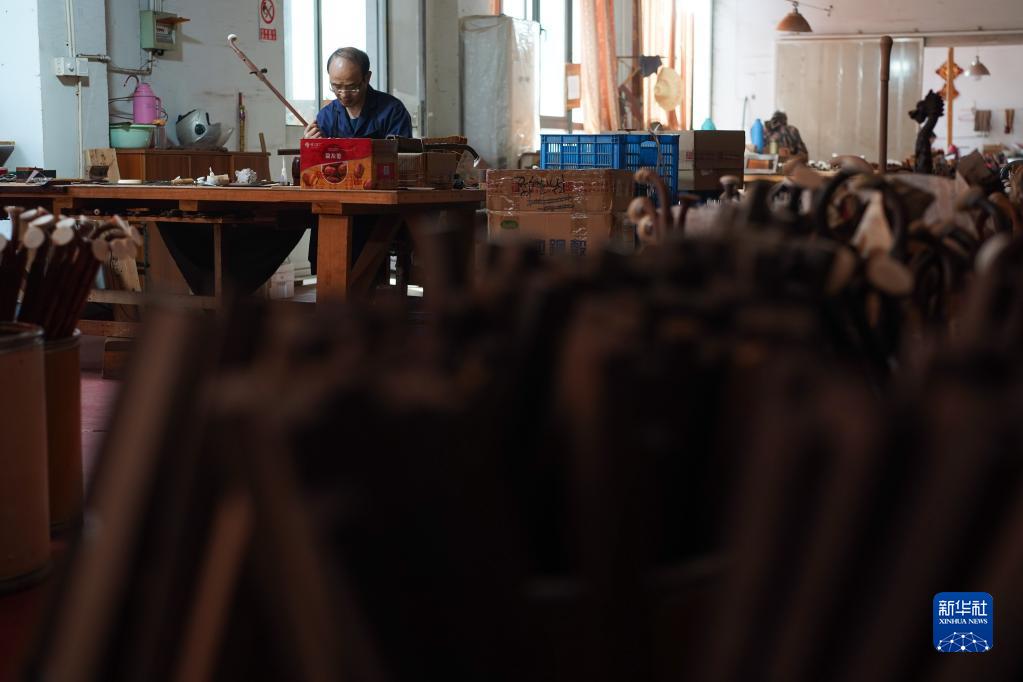 3月28日,在江苏无锡梅村街道二胡产业园古月琴坊车间,工人在制作二胡。