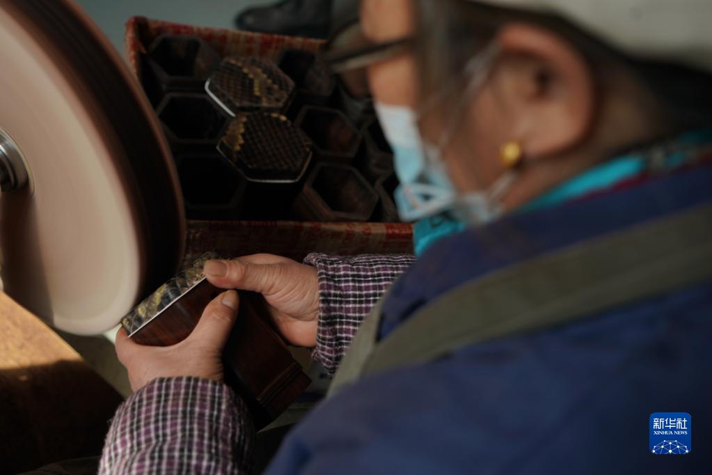 3月28日,工人在江苏无锡梅村街道二胡产业园古月琴坊车间抛光琴筒。