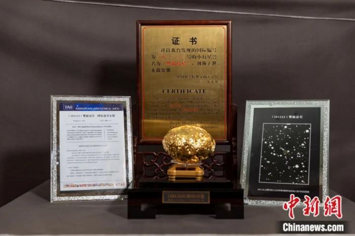 “樊锦诗星”国际命名公报、证书、模型。敦煌研究院供图