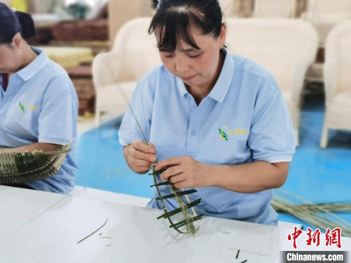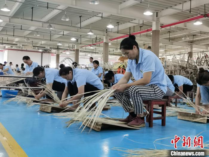 陕西省汉中市南郑区一藤编企业中,当地民众正在生产藤编商品。党田野 摄