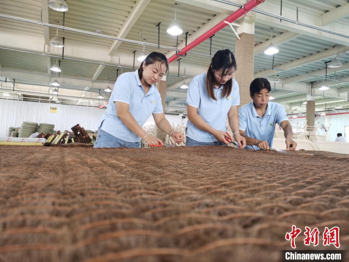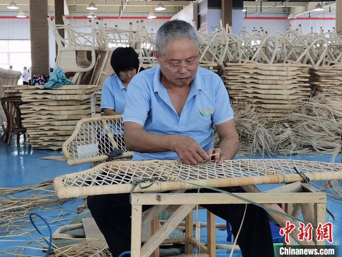藤编加工厂房内,工人正在制作各类藤编商品。党田野 摄