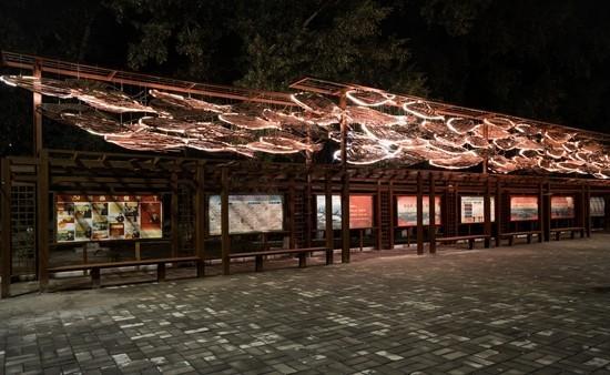 夜晚亮灯之后的《连年有鱼》。清华大学美术学院项目团队供图