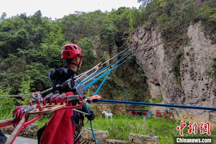 中新网福州11月4日电 (卢逸致 卢文锋 张一凡)窄而长,柔而韧,这是绳索的特点,也是福建省森林消防总队特勤大队三中队班长李向磊在绳索救援技术上探索的真实写照。