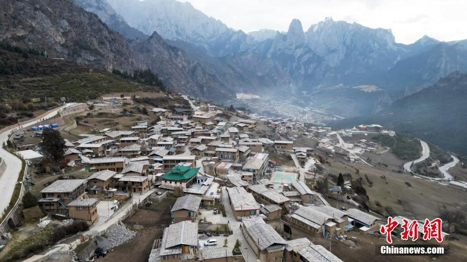 11月3日,航拍甘肃省甘南藏族自治州迭部县扎尕那景区藏族村落的建筑。(无人机照片)中新社记者 九美旦增 摄