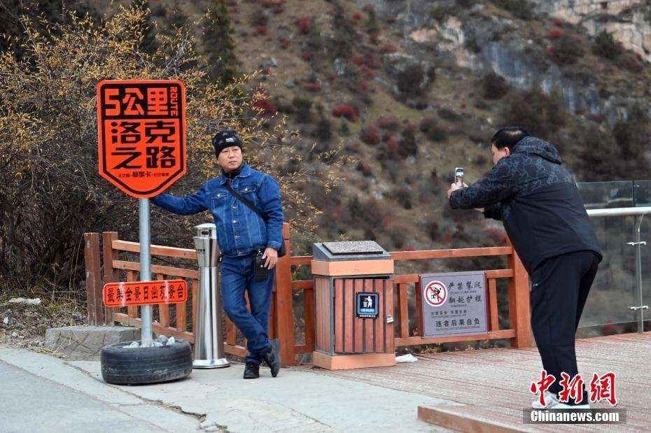 11月3日,甘肃省甘南藏族自治州迭部县,游客在扎尕那景区拍照留念。中新社记者 九美旦增 摄