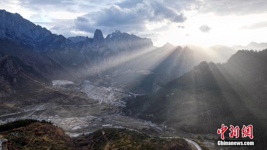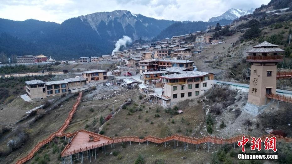 11月3日,航拍甘肃省甘南藏族自治州迭部县扎尕那景区。(无人机照片)中新社记者 九美旦增 摄