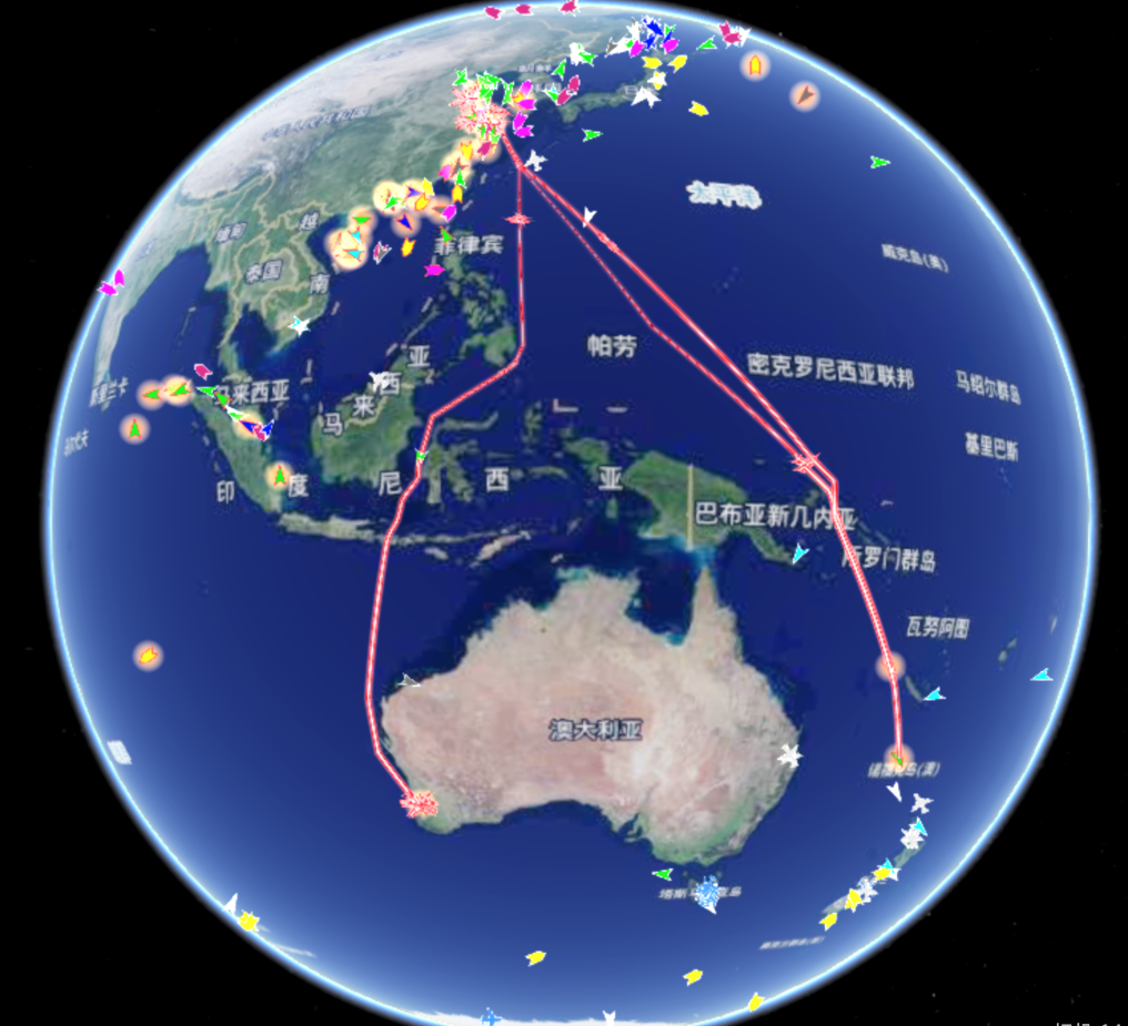 截至11月15日,“雪龙”号、“雪龙2”号和“天惠”轮货船航行轨迹。(武汉大学中国南极测绘研究中心供图)