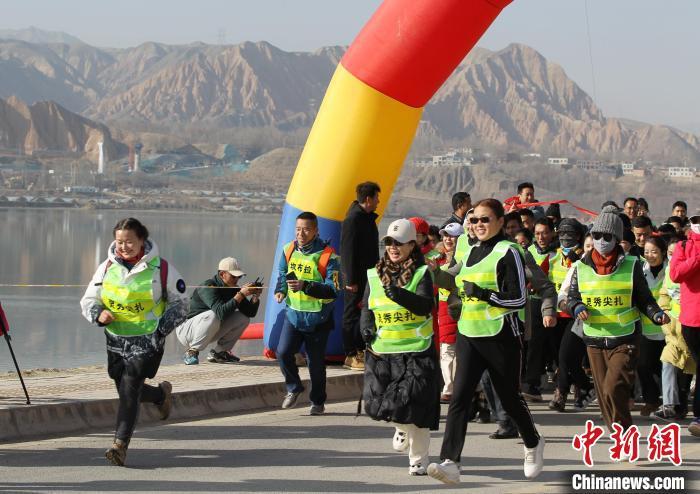 图为民众在黄河岸畔参加“共赴冰雪之约”徒步赛。张添福 摄
