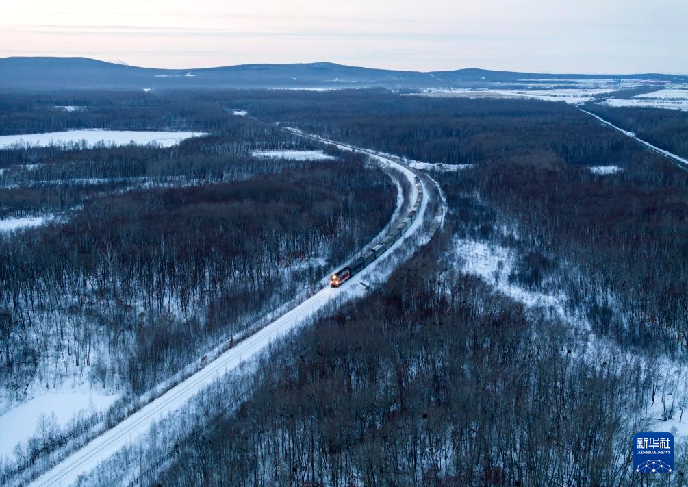 1月23日拍摄的列车即将抵达抚远站(无人机照片)。