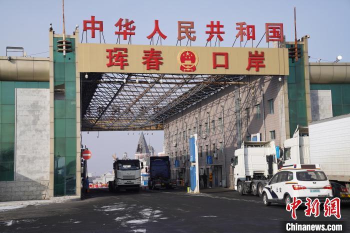 2023年1月8日上午,在吉林省珲春公路口岸内,一辆出口自卸车等待边防检查。(资料图)查皓文 摄
