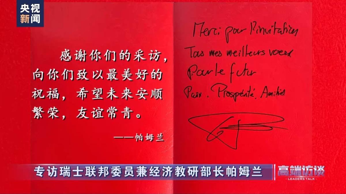 瑞士是第一个与中国签署自贸协定的欧洲大陆国家,帕姆兰部长如何展望两国之间的经贸合作?在中瑞创新战略伙伴关系的背景下,他期待两国在创新领域迸发出怎样的合作火花?又希望中瑞如何在教育等人文交流方面携手前行、合作共赢呢?让我们一起在对话中寻找答案。