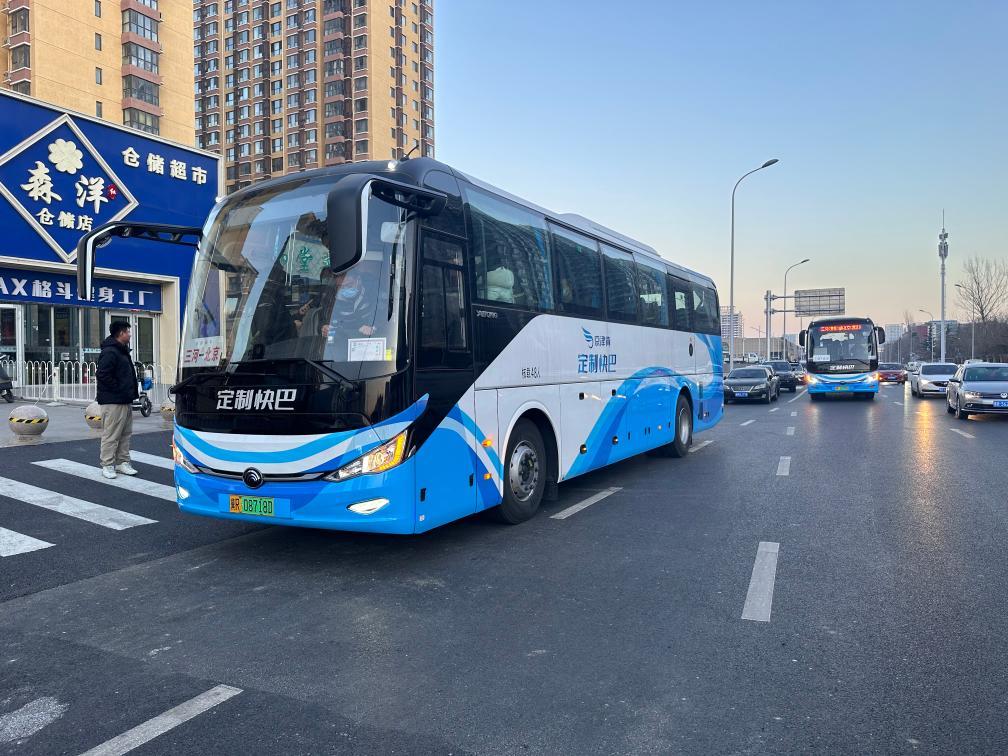 每天清晨,一辆印有“京津冀定制快巴”字样的大巴,都会从河北廊坊市区德荣帝景站点准时出发,驶往北京国贸。“上车点就设在小区门口,上车有座,接驳地铁,轻松换乘。”乘客张辉说,到北京上班,乘坐定制快巴就像公司班车一样,很方便。