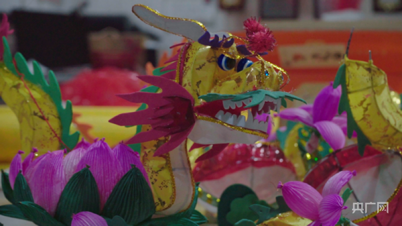 做了七十多年花灯的曹真荣如今已经是江苏省非物质文化遗产秦淮灯彩代表性传承人,近些年,曹真荣在传承老手艺的基础上不断创新。记者在作坊里看到,一只荷花灯在曹真荣的手里加上龙头、龙尾、龙爪,“荷花龙”灯就出炉了,“完整的龙灯制作起来很繁琐,我就创新地把荷花灯和龙灯结合在了一起,制作简单,又好看。”