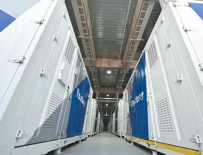 大连全钒液流电池储能调峰电站的电池集装箱。中国科学院大连化学物理研究所供图