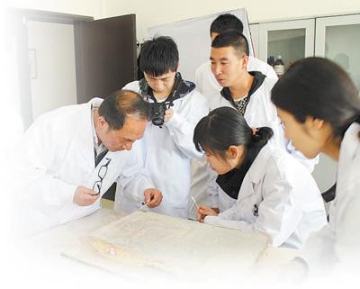 壁画修复师在讨论修复方案。
