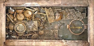 有望刷新楚大鼎尺寸纪录的武王墩铜鼎,目前还“躺”在东1室,等待进一步发掘。与该鼎同处一“室”的还有不少青铜器。“像这样保存完整、又比较成套的青铜器,比较罕见。”宫希成介绍。