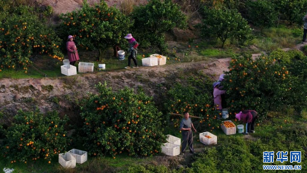 在宁都县的一处果园内,果农们正忙着采摘、分装、搬运。(宁都县融媒体中心供图)