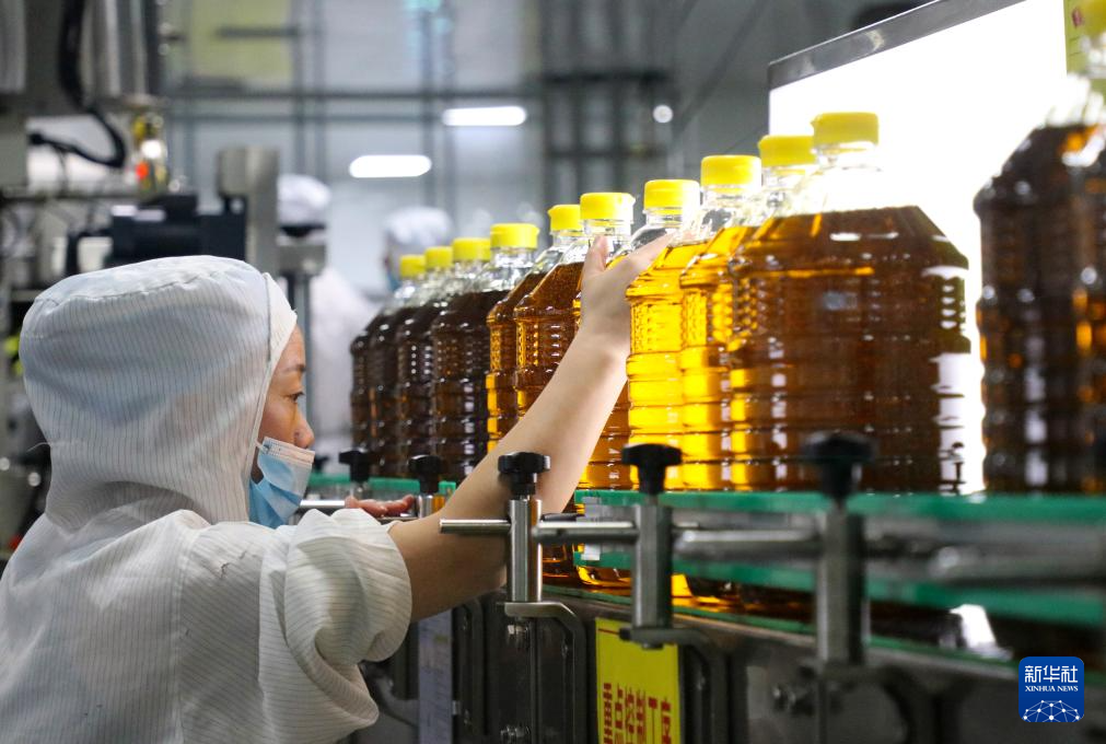 10月11日,在驻马店市正阳县鲁花集团灌装车间,工作人员在生产线上忙碌。