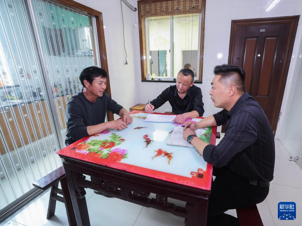 3月26日,三星村党委委员、村委会副主任陈建林(右一)和三星村网格长韩建松(中)来到桃农周云福(左一)的家中,开展“敲门入户听民声,精准服务暖民心”网格走访活动,通过面对面沟通、点对点服务,切实解决村民“急难愁盼”问题。