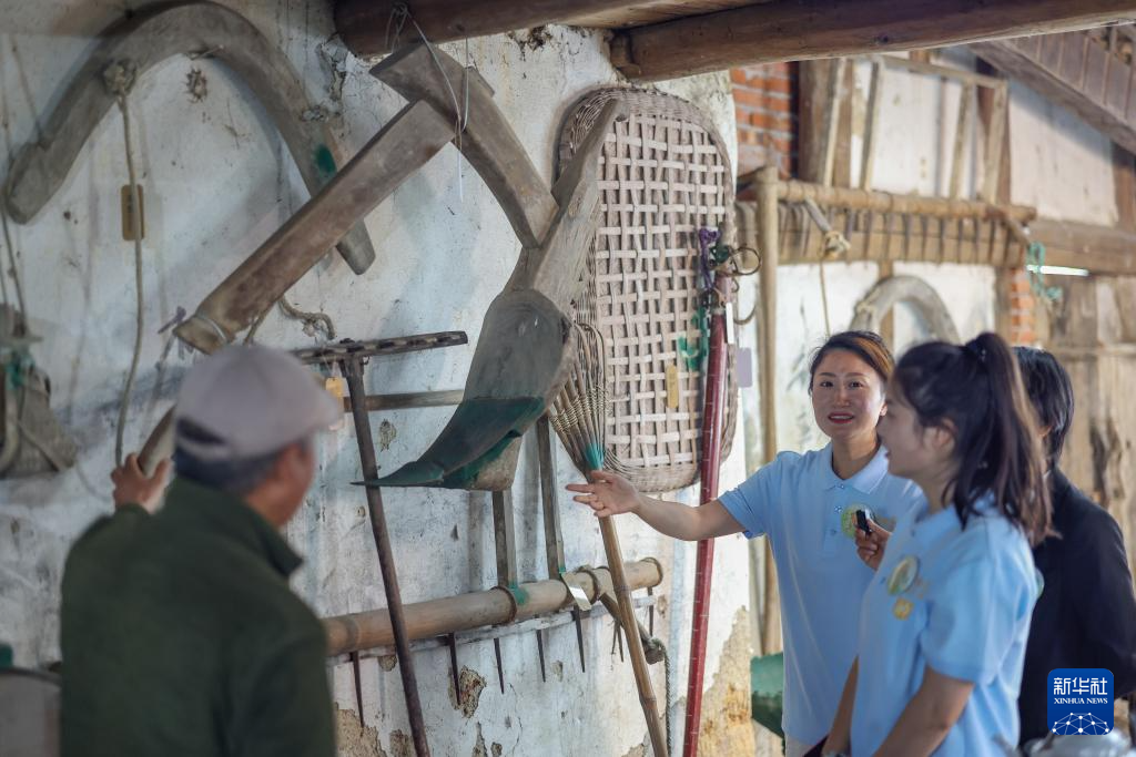 4月24日,在重庆市綦江区三角镇中坝村,“村书记”主播团在直播间和村民一起介绍乡村农耕文化。