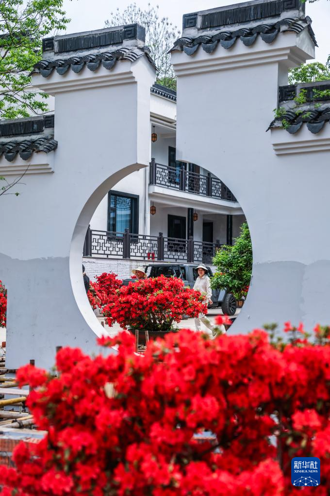 4月24日,游客在游览长兴县李家巷镇李家巷村的弁山锦园。