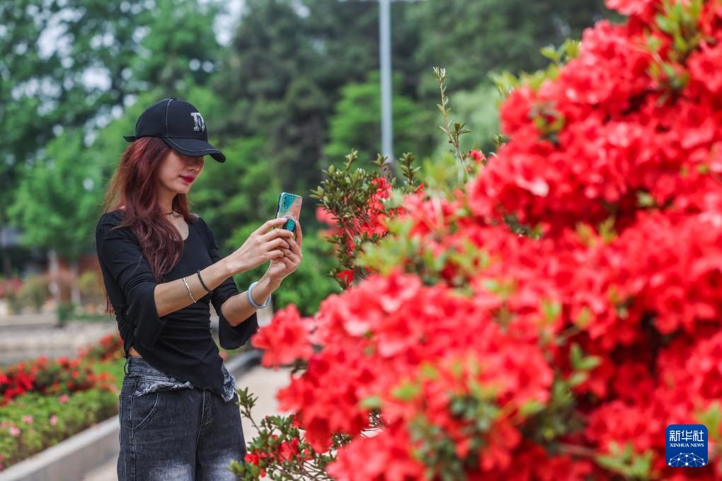4月24日,游客在长兴县李家巷镇李家巷村的弁山锦园游览。