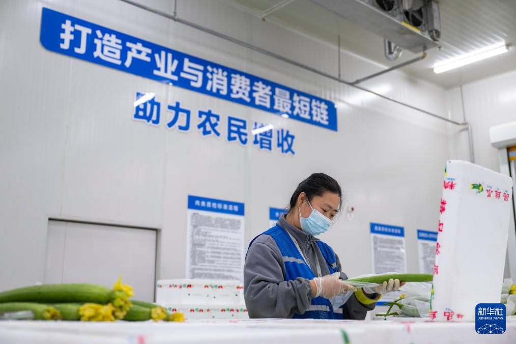 4月23日,在襄阳市樊城区好邻居生鲜物流中心,工作人员在查看蔬菜品质。