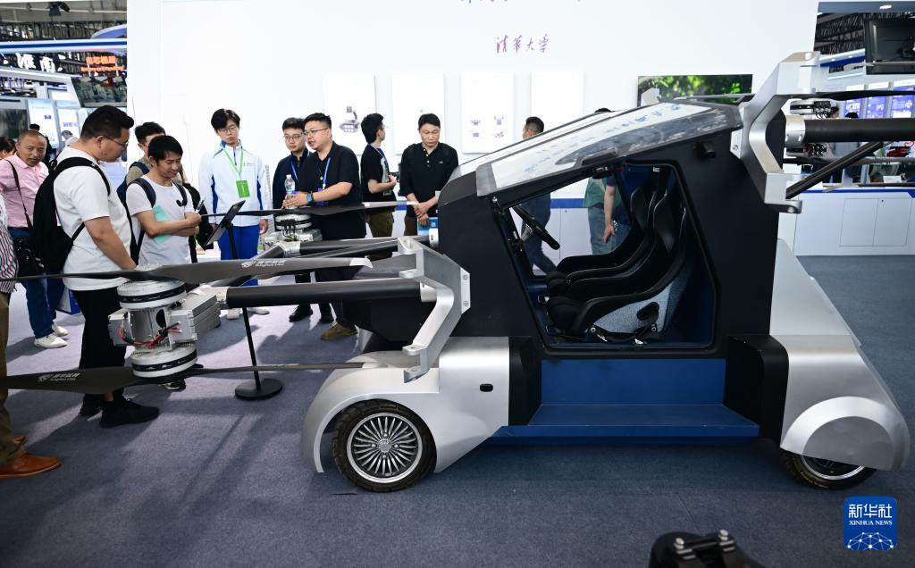 4月26日,观众在第三届中国(安徽)科技创新成果转化交易会上参观一款飞行汽车。