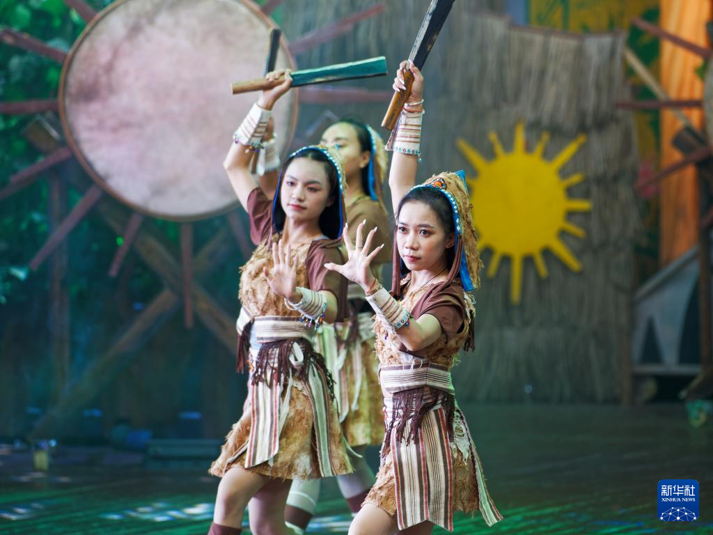 5月16日,演员在基诺山寨景区表演传统舞蹈。
