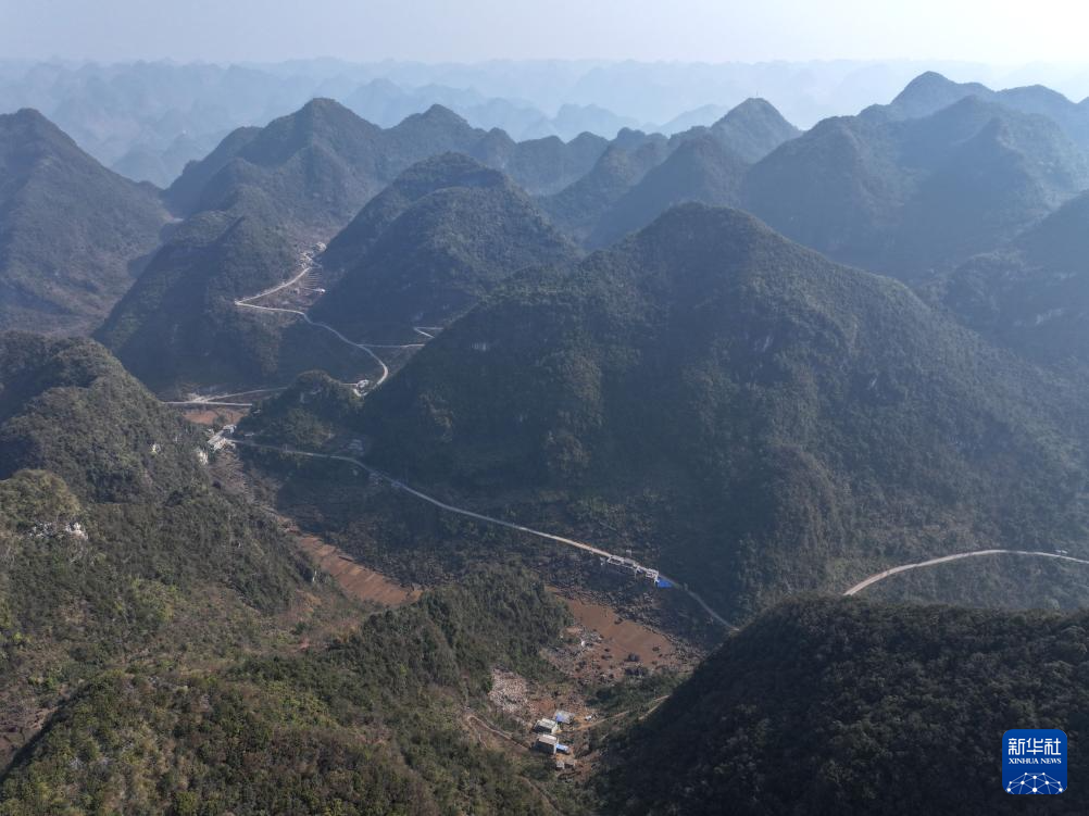 这是广西大化瑶族自治县板升乡弄雷村哈宝屯(无人机照片,2025年1月20日摄)。十年前,哈宝屯已经从不通公路的山弄里,整体搬迁至公路边。