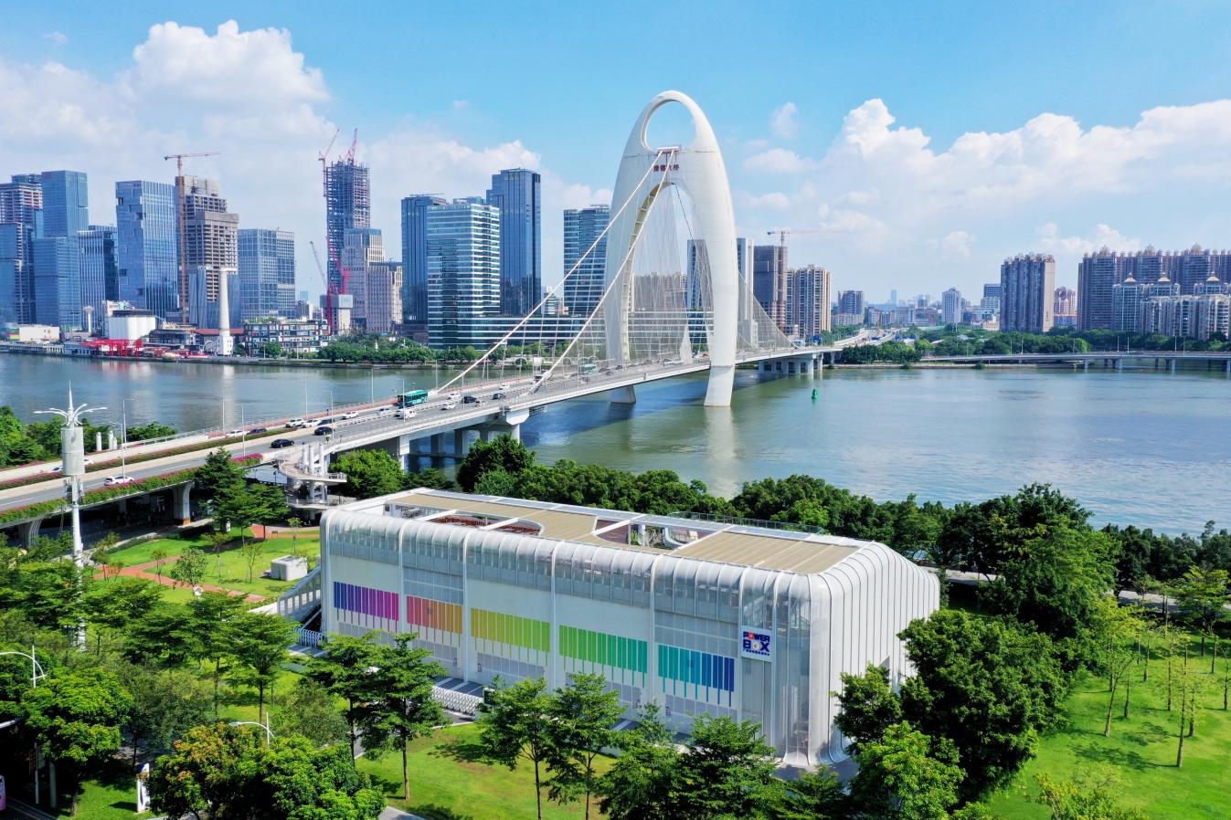 此外,珠江畔,绿色变电站的玻璃幕墙映照着蓝天,110千伏猎桥变电站宛若“月光宝盒”,让城市电网与花城风貌相融共生;氢能应急发电车、无人机等50余台绿色装备投入实战;3个近零碳示范区、9座节能减排变电站为城市注入绿色动能……