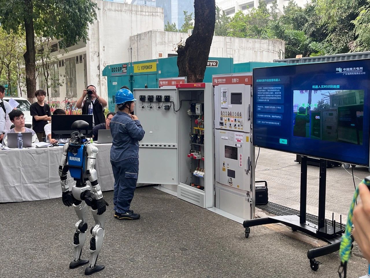 在赛场周边和电房,无人驾驶汽车搭载着智能机器狗,精准抵达高压室、电缆走廊等关键区域。智能机器狗搭载全景摄像头、红外热成像仪和局放传感器,能够实时捕捉设备运行状态,提前发现隐患并精准告警。工作人员穿上机械外骨骼,瞬间变身“大力士”,轻松搬运重达 40 公斤的重物。