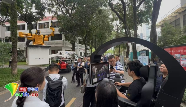 工作人员演示悟空带电作业机器人。中国青年网记者 高蕾 摄